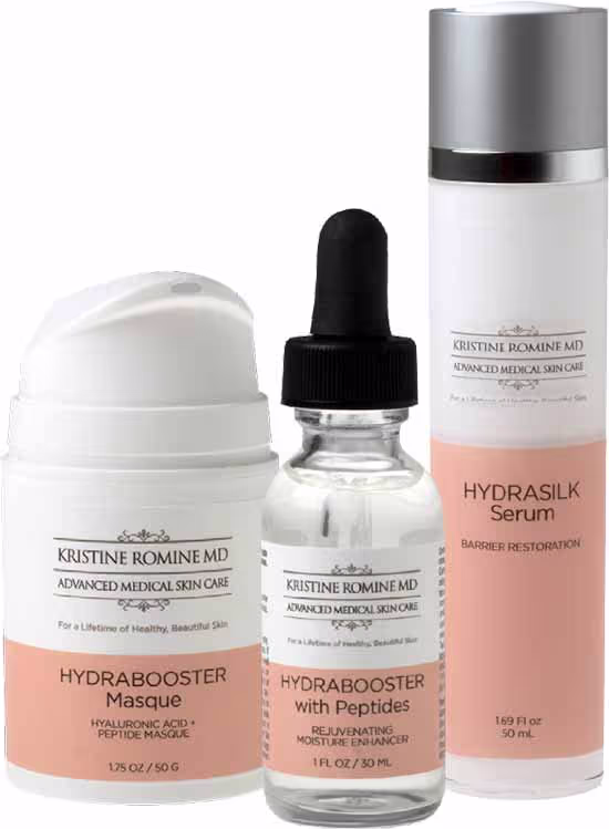 Maintaining proper levels of skin hydration is essential for improving the beauty and function of our skin. Products containing hyaluronic acid, peptides, ceramides, cholesterol, and other barrier restoring ingredients are vital to the support of overall skin health.